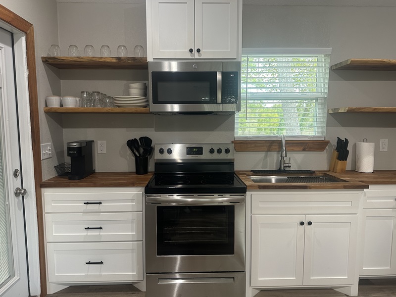 Basic cleaning supplies will be provided such as 1 roll of paper towels and a multipurpose cleaner. Step out onto the spacious back porch to stargaze or unwind while watching the sun set behind the Trinity River.