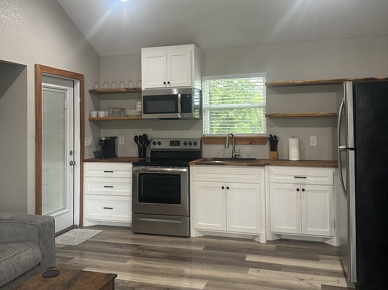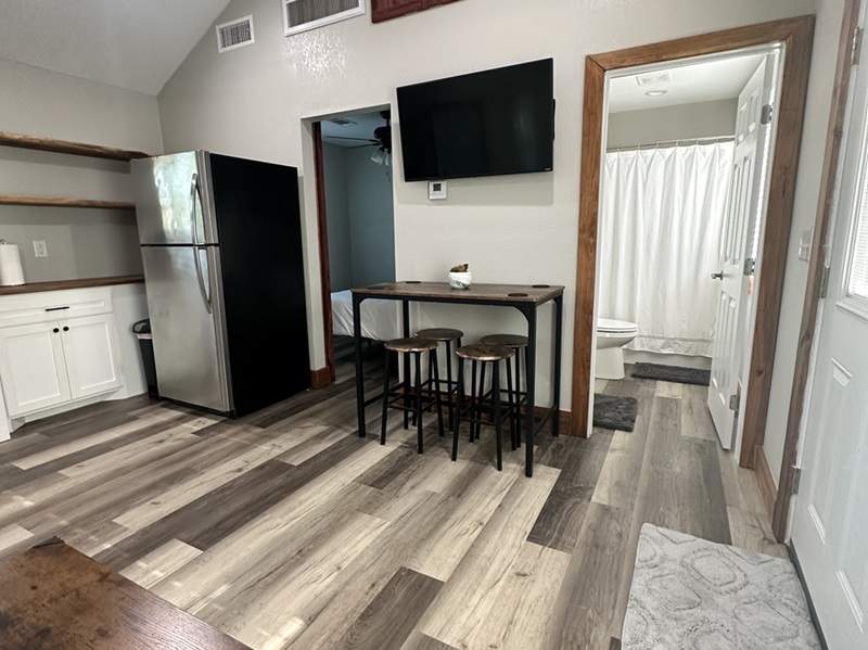 Our cabins on Lake Livingston and the Trinity River offer an open floor plan that is fully furnished with a queen memory foam mattress, 1 bathroom and will comfortably sleep 4 guests.